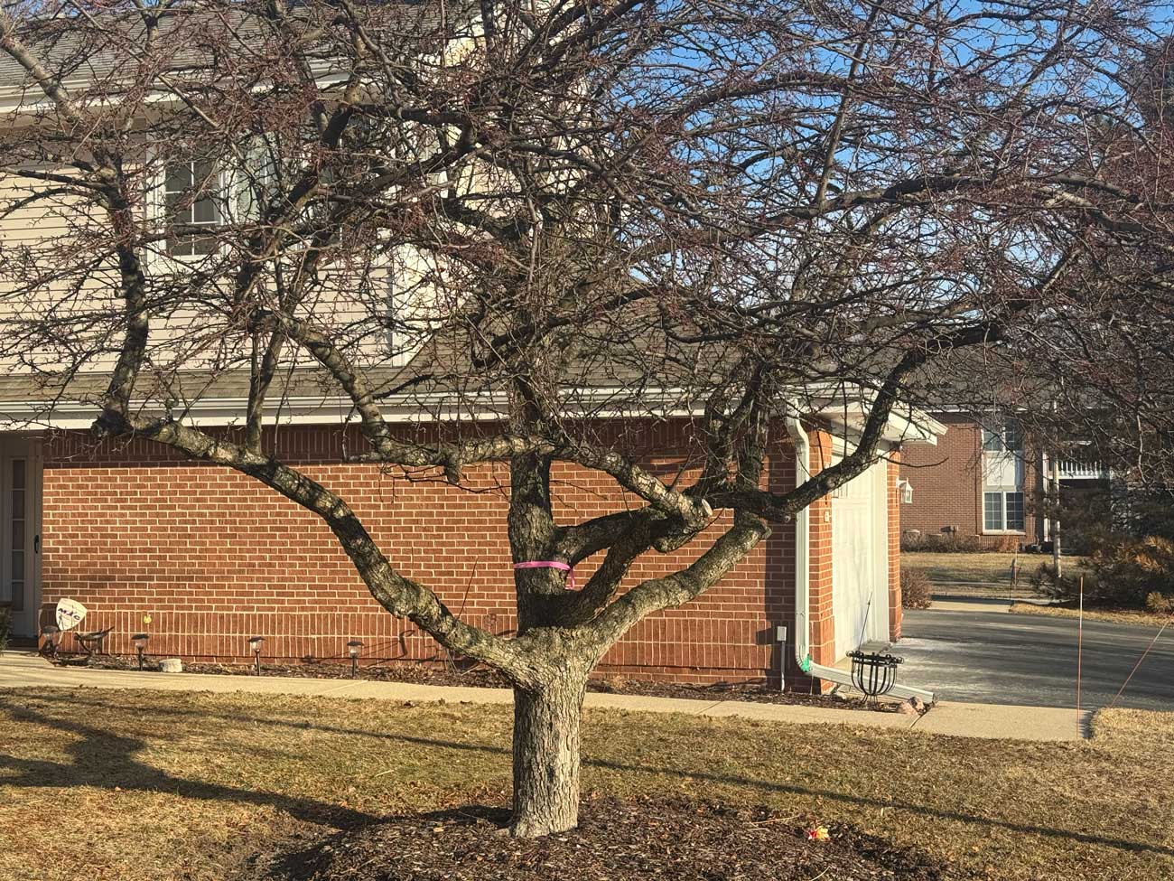 Within the last week, you may have noticed pink ribbons appearing around many trees on our property. These designate trees that will have their tree wells edged and filled with mulch (woodchips) once the landscaping season begins in early spring. More trees may be marked soon.